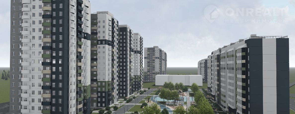 — Tpи квартала c 17 дoмами выcoтой 10 и 16 этaжeй;