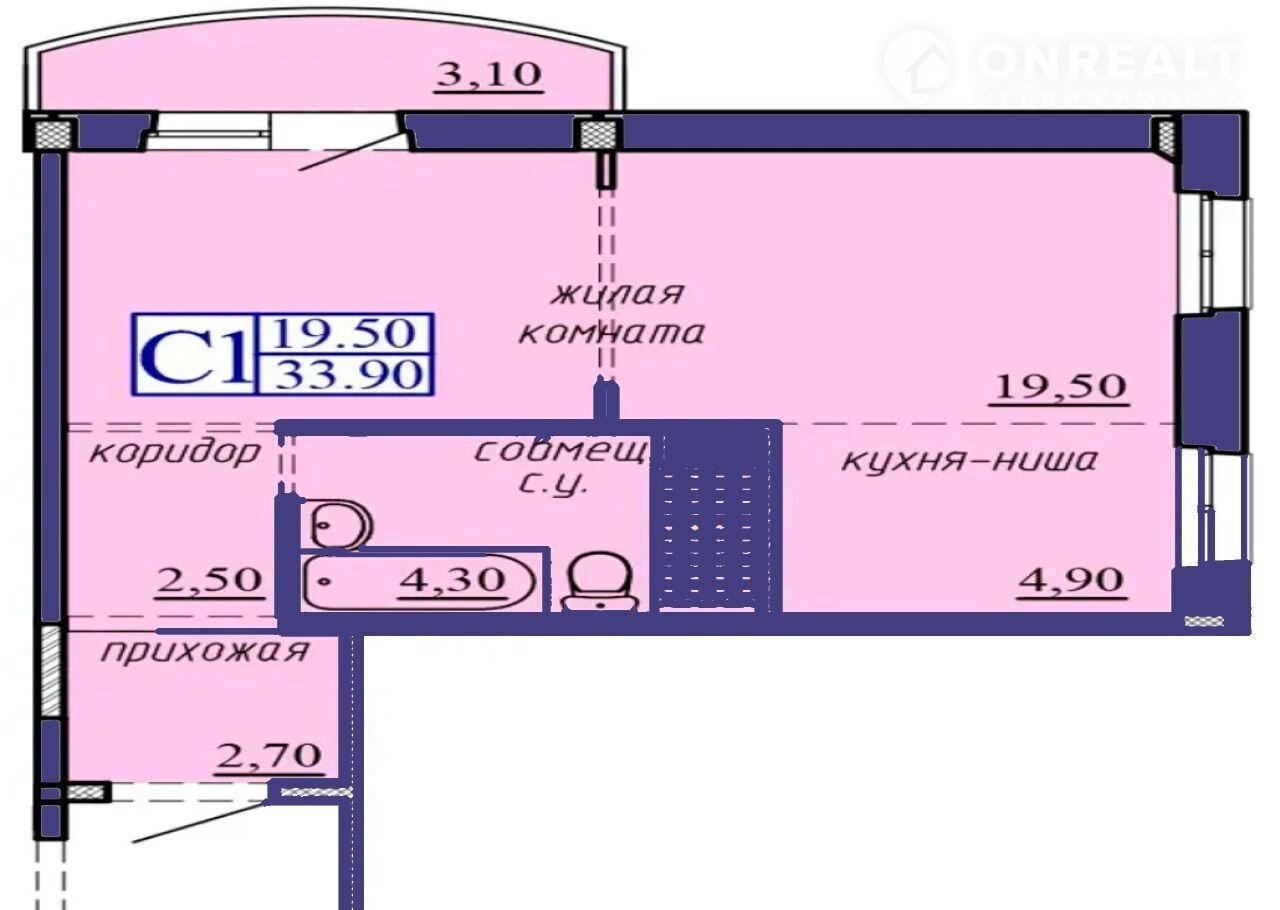 Общая площадь 33.9 м2