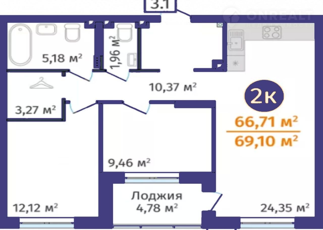 Общая площадь 66.7 м2
