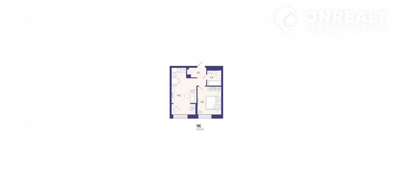 Общая площадь 33.5 м2