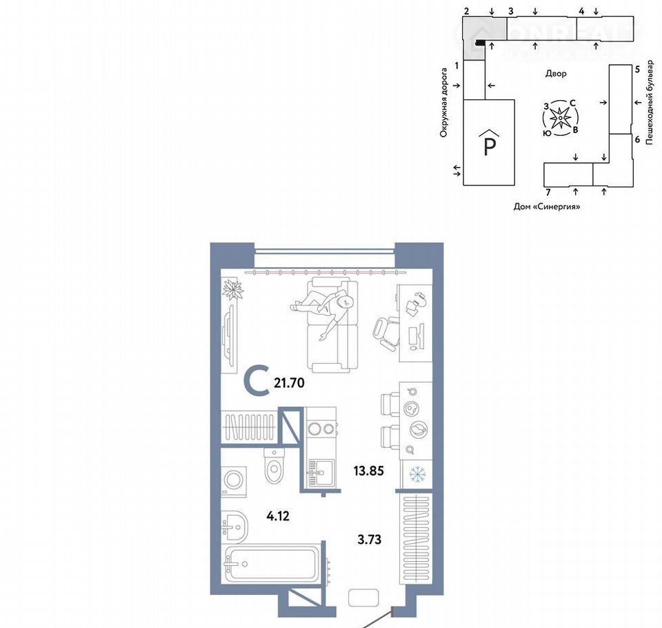 Общая площадь 21.7 м2
