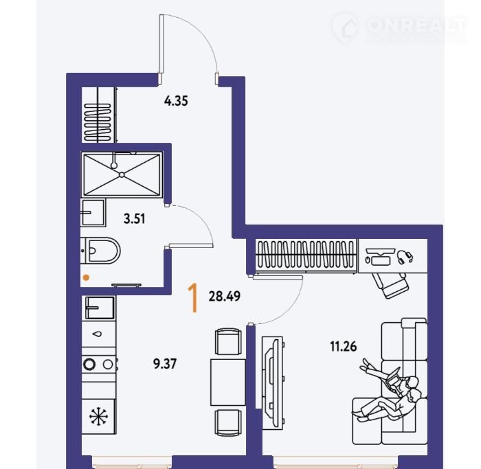 Общая площадь 28.5 м2