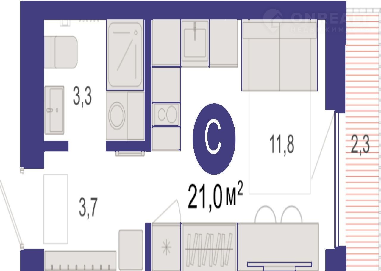 Общая площадь 21 м2