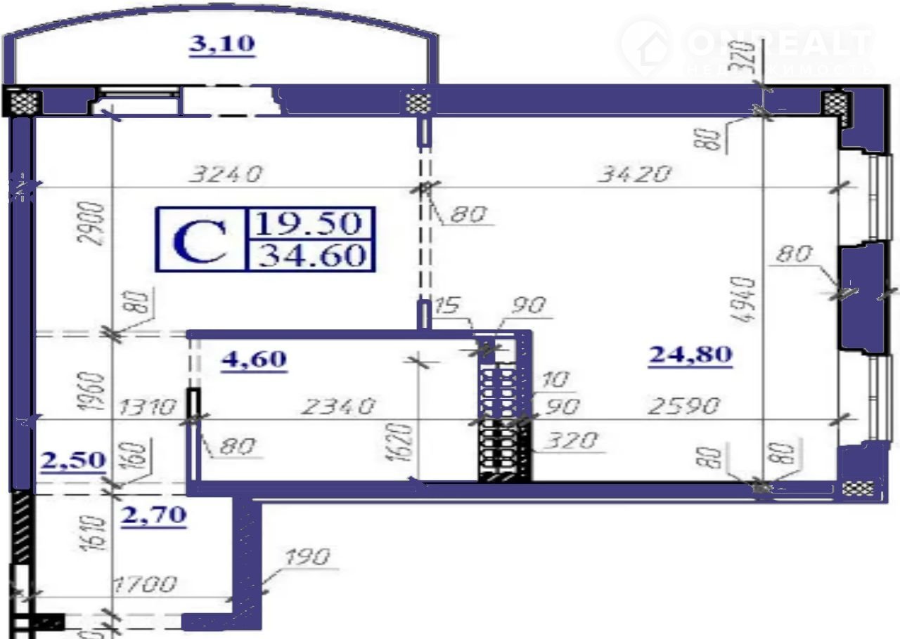 Общая площадь 34.6 м2