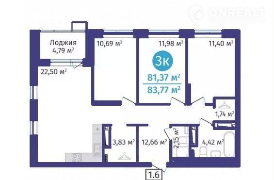 Общая площадь 81.4 м2