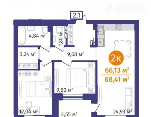 Общая площадь 66.1 м2
