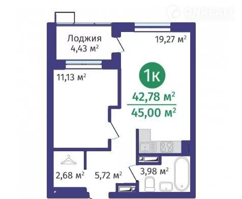Общая площадь 42.1 м2