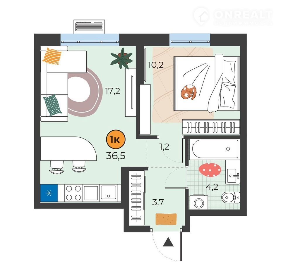 Общая площадь 36.5 м2