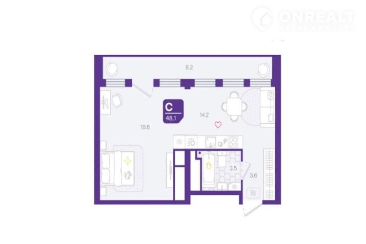 Общая площадь 48.1 м2