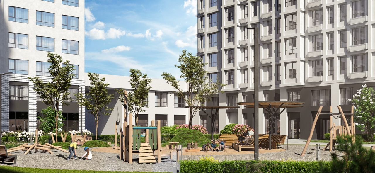 - Закрытые дворы (тренажеры, детские площадки, места для отдыха)