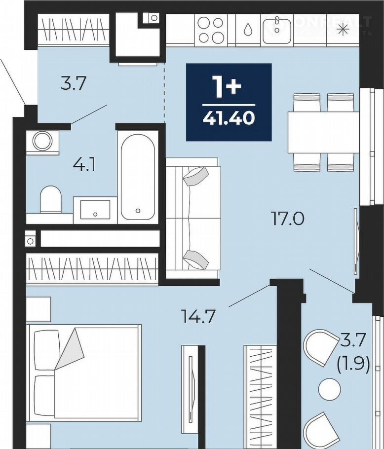 Общая площадь 41.4 м2