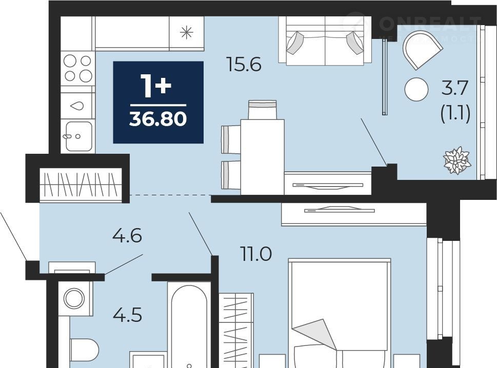 Общая площадь 36.8 м2
