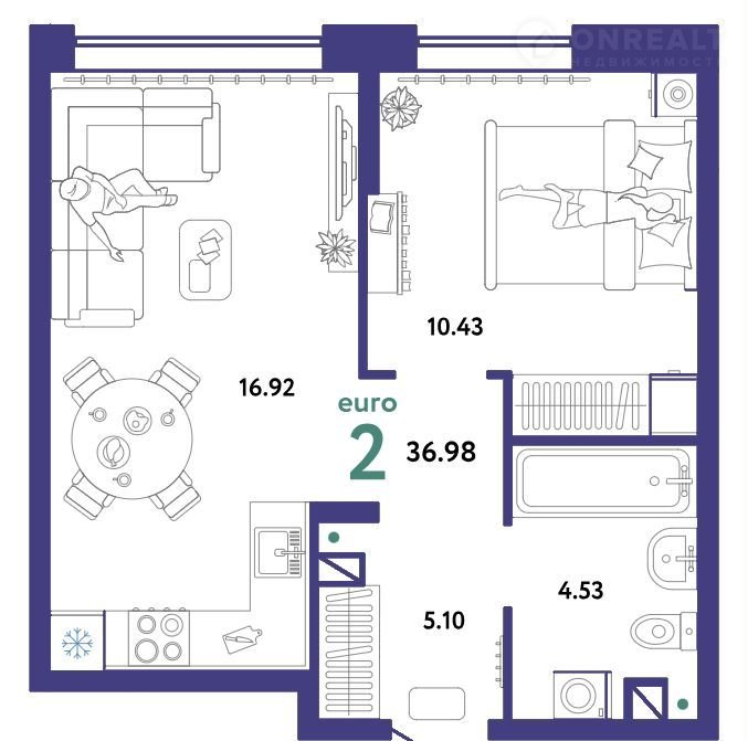 Общая площадь 37 м2