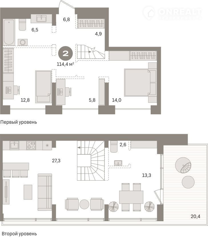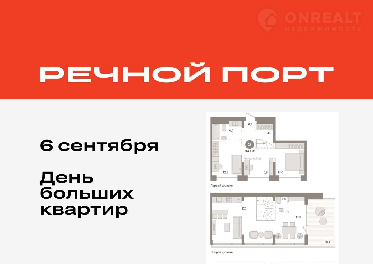 2-комнатная квартира, 114.4 м2, этаж 8 / 8, на продажу в Тюмени, Причальная улица, 7