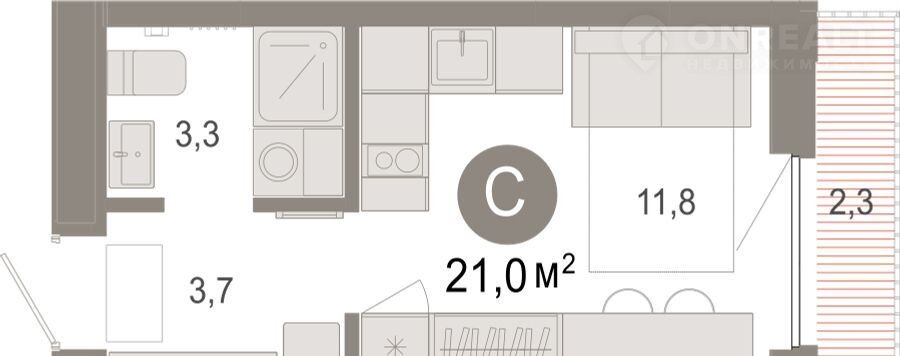 Общая площадь 21 м2