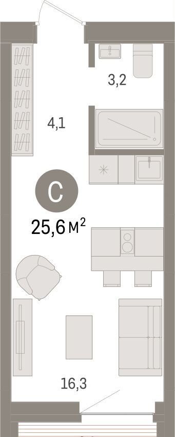 Общая площадь 25.6 м2