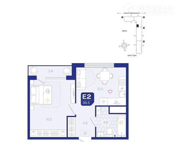 Общая площадь 39.5 м2