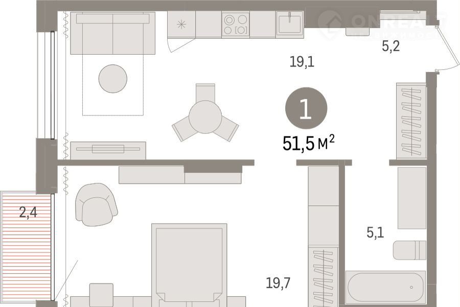 Общая площадь 51.5 м2