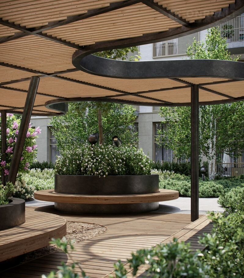 Пешеходные бульвары внутри района соединят между собой улицу ресторанов, детские и спортивные площадки, событийную площадь и летний кинотеатр.