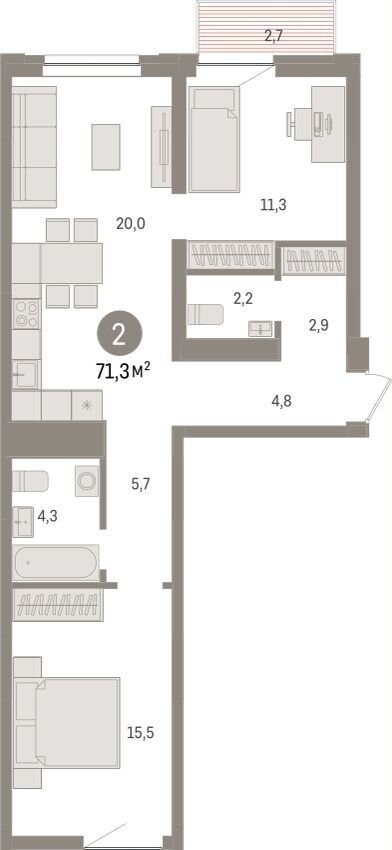 Общая площадь 71.4 м2