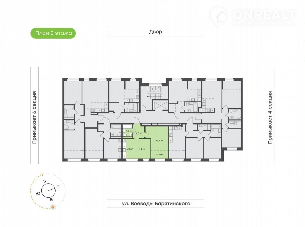 2-комнатная квартира, 46.3 м2, этаж 2 / 6, на продажу в Тюмени