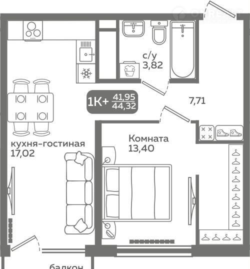 Общая площадь 42 м2
