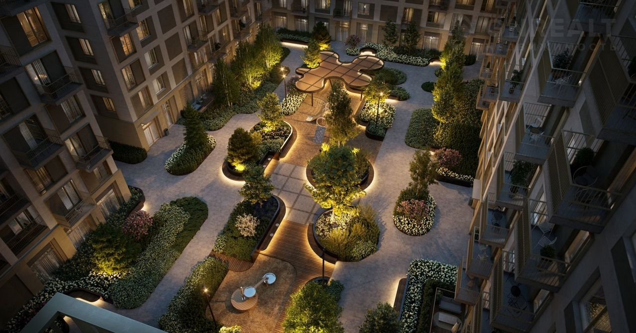 Пешеходные бульвары внутри района соединят между собой улицу ресторанов, детские и спортивные площадки, событийную площадь и летний кинотеатр.