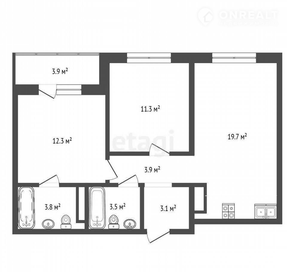 2-комнатная квартира, 61.5 м2, этаж 20 / 21, на продажу в Тюмени, Харьковская улица