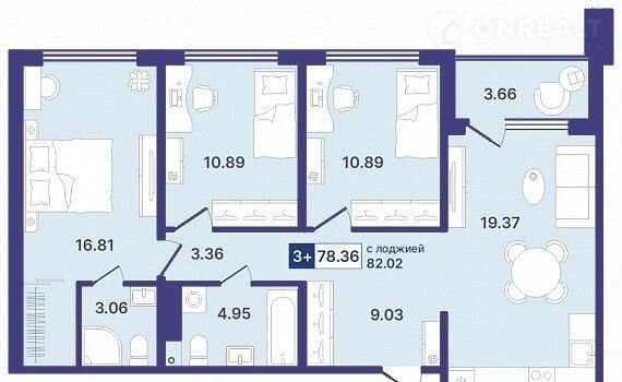 Общая площадь 78.4 м2