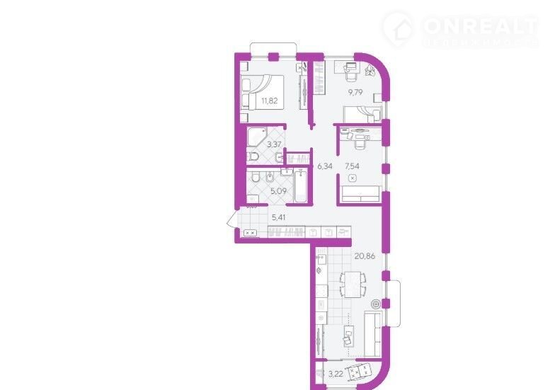 Площадь кухни 20.9 м2