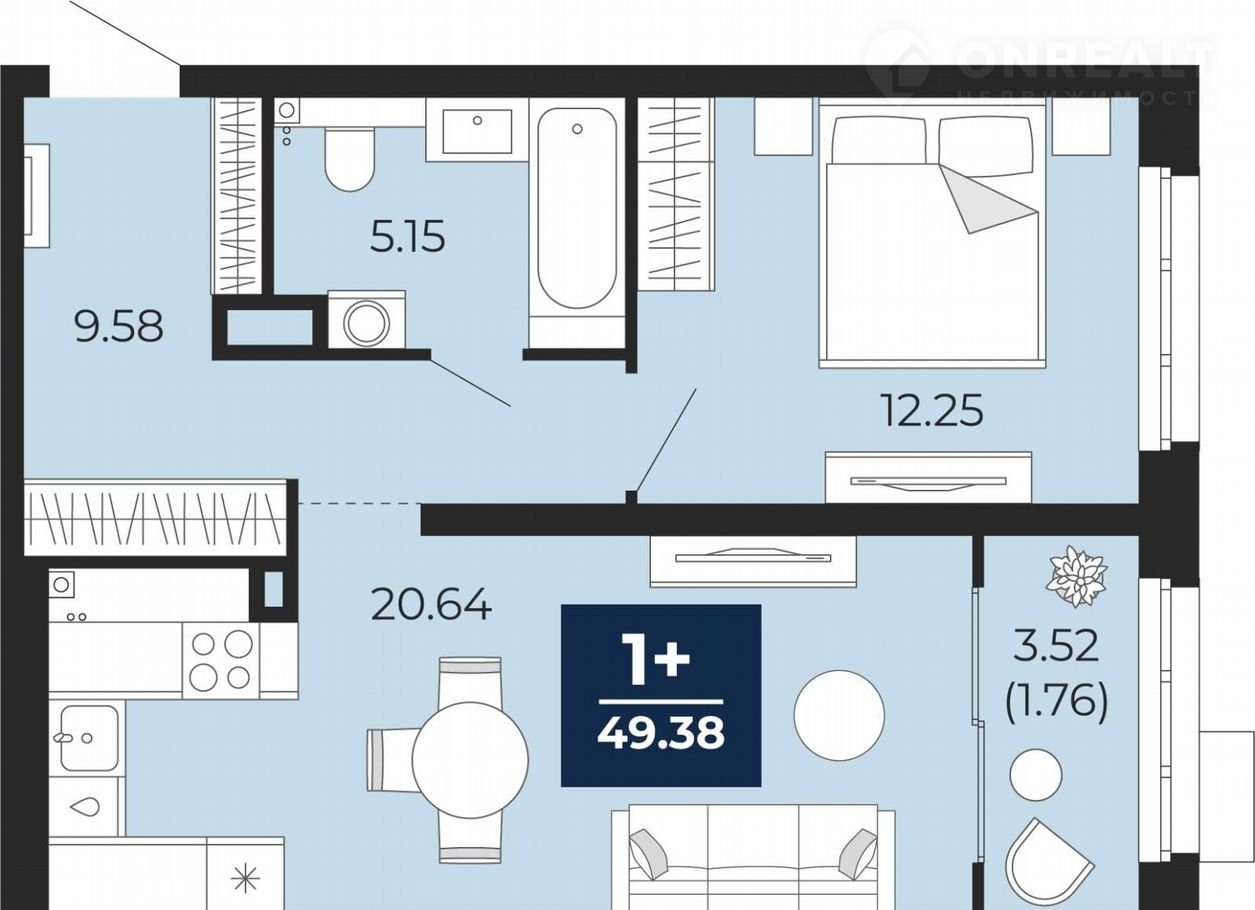 1-комнатная квартира, 49.4 м2, этаж 2 / 22, на продажу в Тюмени, Арктическая улица, 12
