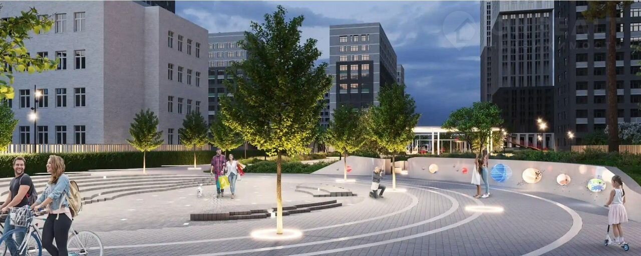 Современная архитектура, лаконичные фасады, концептуальная ночная подсветка, парадные с выходом на улицу и во двор;