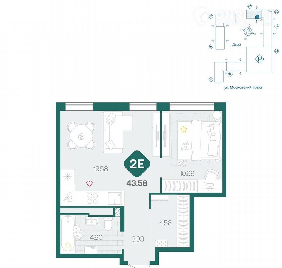 2-комнатная квартира, 43.6 м2, этаж 7 / 17, на продажу в Тюмени