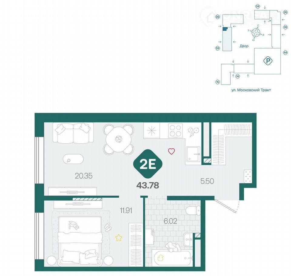 Общая площадь 43.8 м2