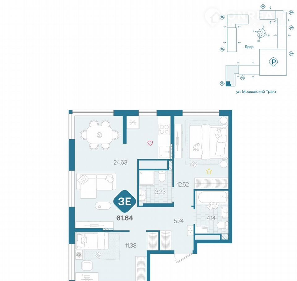 Общая площадь 61.6 м2