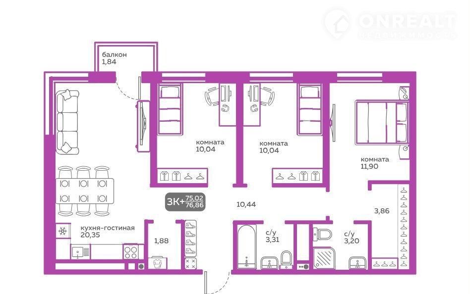 Общая площадь 75 м2