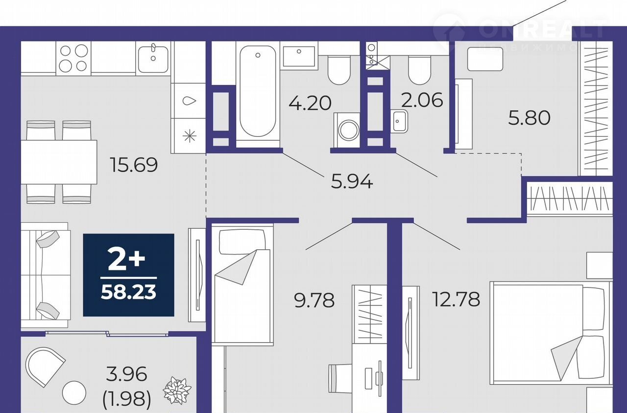 Общая площадь 58.2 м2