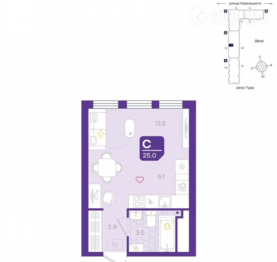 Общая площадь 25 м2