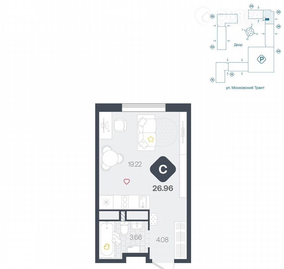 Уютная студия с большой ванной комнатой и прихожей. Подойдет для студентов и свободных людей.