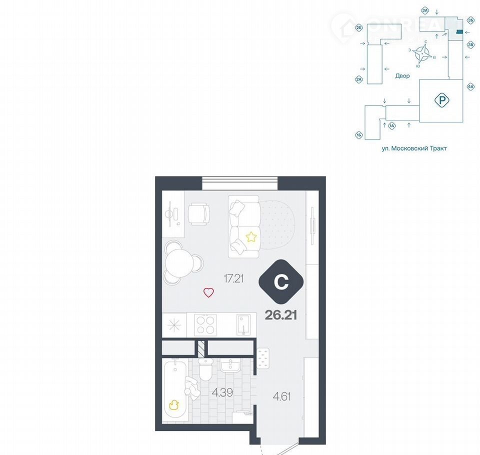 Квартира студия, 26.2 м2, этаж 17 / 17, на продажу в Тюмени