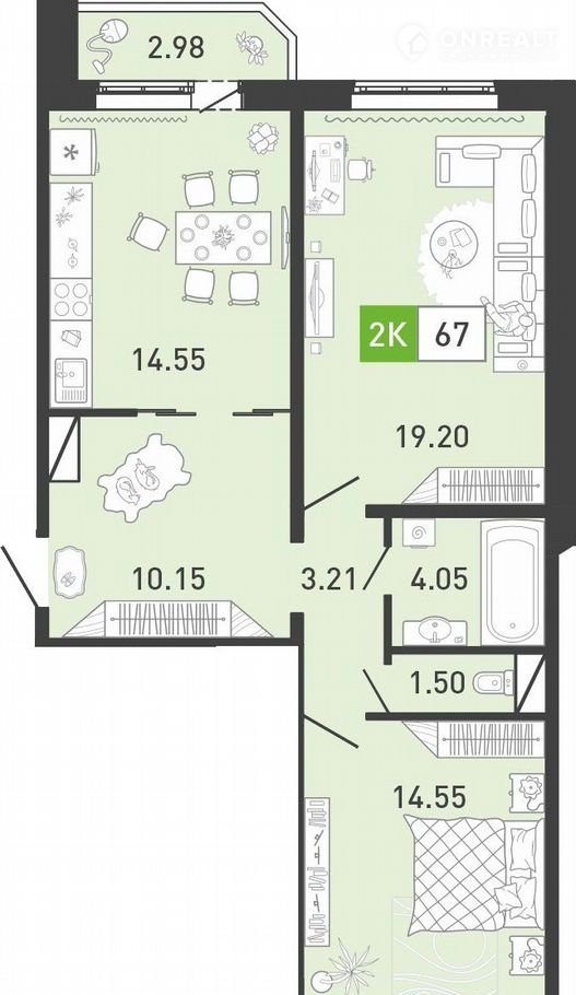 Общая площадь 67.7 м2