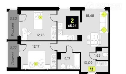 Общая площадь 65.2 м2