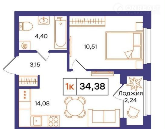 Общая площадь 34.4 м2
