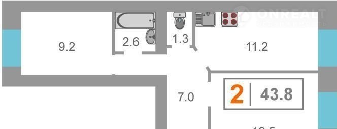 Общая площадь 43.8 м2