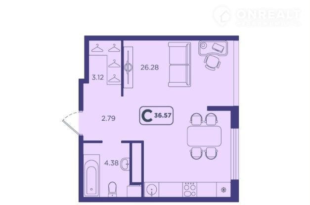 Общая площадь 36.6 м2