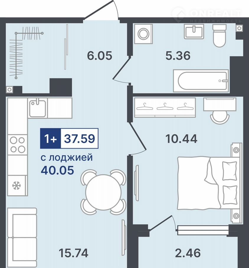 Общая площадь 37.6 м2