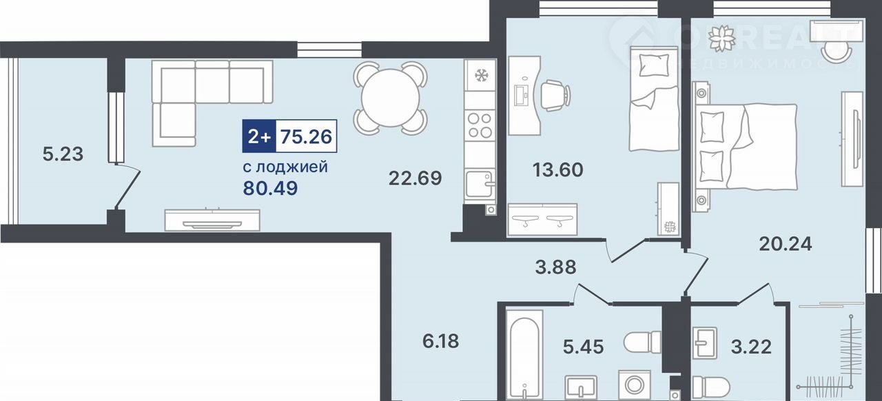 Общая площадь 75.3 м2