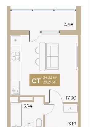 Общая площадь 24.2 м2