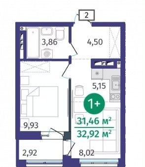 Общая площадь 31.5 м2