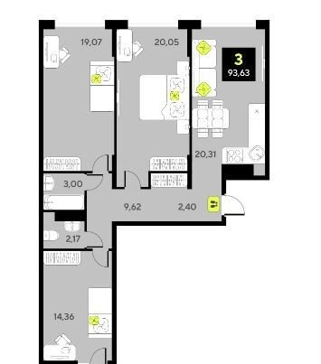 Общая площадь 93.6 м2